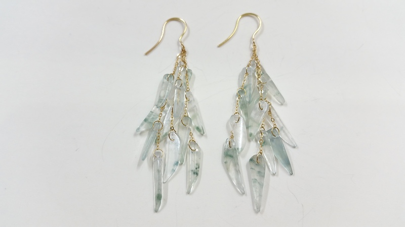 E0034 天然翡翠冰種飄花耳環