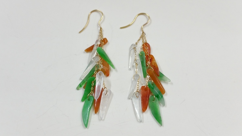 E0047 天然冰種翡翠三彩耳環