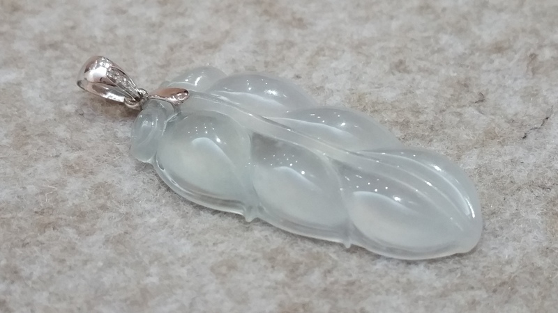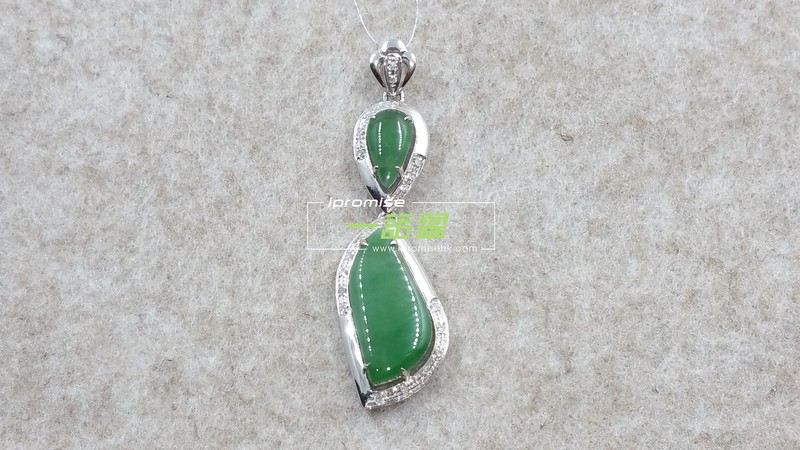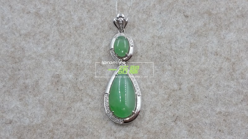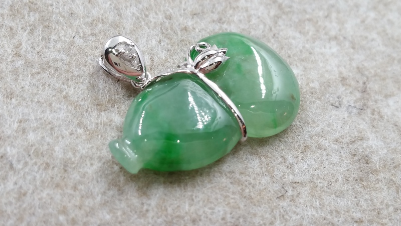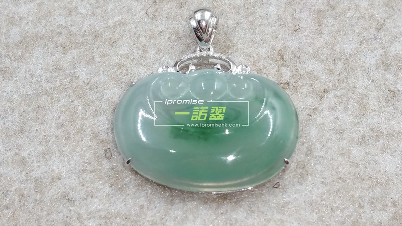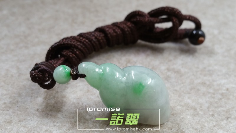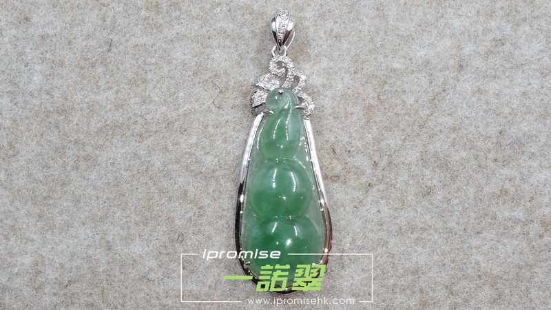 P0679 本品翡翠葫蘆玉質細緻,已配上18K金鑽石扣,佩戴效果大方得體,獲一年輕貴客惠顧接去。在此祝福她心想事成,身體健康笑口常開