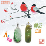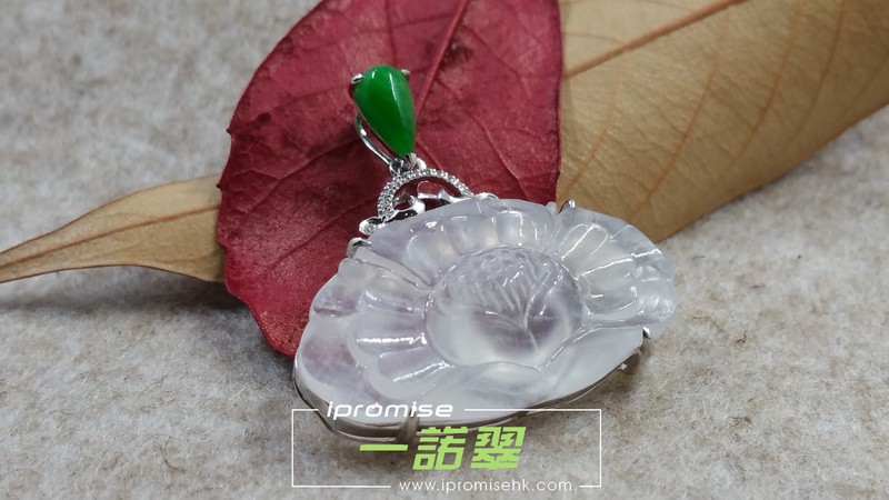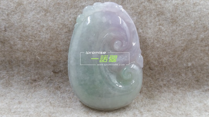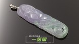 同時帶有紫(春)和綠(彩)兩種顏色;色彩配搭協調柔和,雕工精巧,種質細膩,為翡翠吊飾之精品。