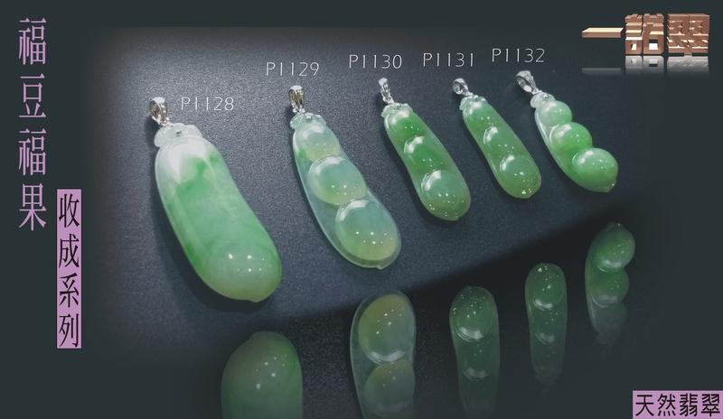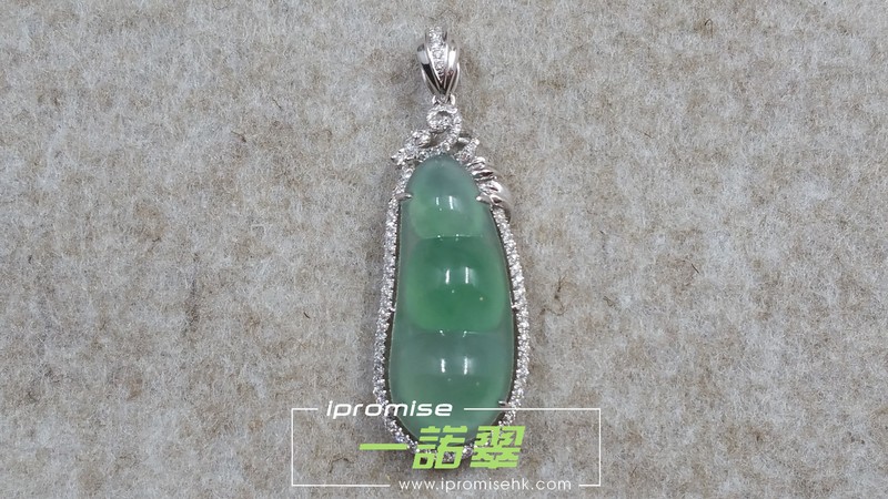 P0704 天然翡翠冰種滿綠福豆吊墜