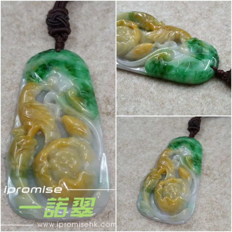 P0569 天然翡翠春帶彩如意吊墜 【已售】