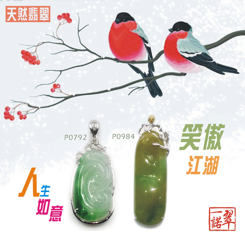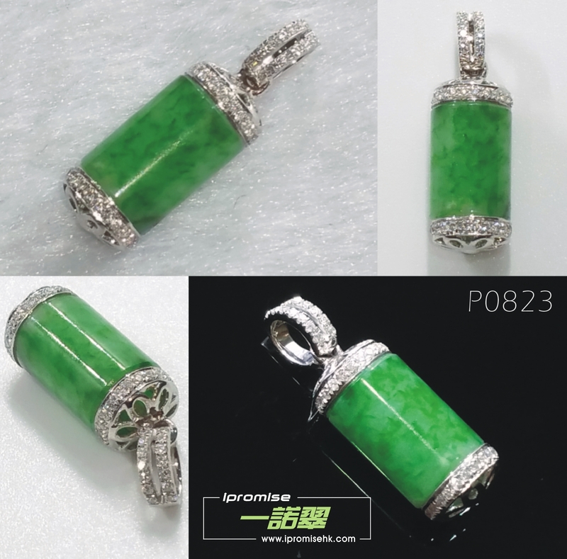 P0823 天然翡翠 · 滿綠路路通吊墜