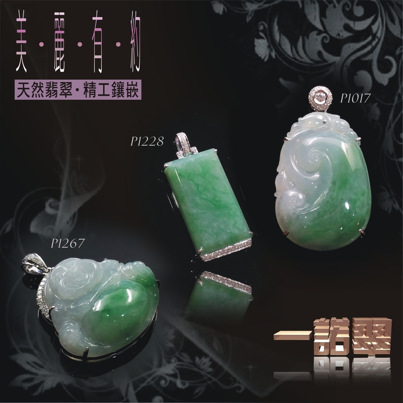 客人早前預訂了可愛佛公及滿綠無事牌,我們替她留起了。日前她依約來取時,還選購了剛鑲嵌好的如意吊墜。客人佩戴起這幾件鑲嵌翡翠,真的非常漂亮。但願這些翡翠飾品伴著貴客快樂過每一天,事事如意,終身美麗!
