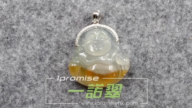 P0053 天然翡翠冰種黃翡彌勒佛吊墜