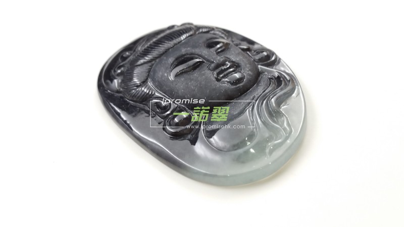 本品屬冰種烏雞翡翠,特點是冰黑中飄綠花圖案。造物主最近不作中國山水畫,改為採用西方印象派手法妙用光影描繪湖面如鏡碧波逐綠,令本品別具特色
