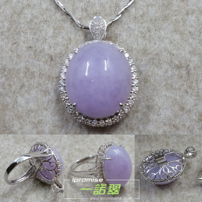 天然翡翠紫羅蘭大蛋面吊墜+指環