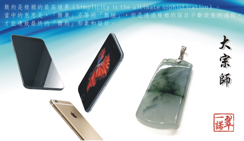 大宗師—— 諾語 2016-11-01 【簡約是複雜的最高境界】 「蘋果教主」喬布斯闡述蘋果產品的理念時曾引述達文西的名言: 簡約是複雜的最高境界(Simplicity is the ultimate sophistication)。 當中的意思是,「簡單」不等同「簡陋」,而是透過複雜的設計不斷改良的過程,才能達致最終的「簡約」形象和設計。 陸子岡,明代萬曆年間的雕刻家,自幼在蘇州城外一家玉器坊學藝,將印章、書法、繪畫藝術融入玉牌之中,聲名鵲起,後世稱之為「子岡牌」。而其中一款無一紋飾,取諧音「無事(飾)牌」。 首次遇見這種雕件之時,感覺似曾相識,後來看到蘋果手機,因為筆者來自設計業,驚覺兩者竟然奇詭地有著異曲同功之妙,亦一樣出自東西方兩地的大宗師之手筆,可說是簡約主義的「前世今生」。 莊子的名篇《大宗師》中心思想是尊崇自然,而「大宗師」是指最值得尊崇(宗)和敬仰的師尊(師),即「大道」。 而陸子岡、達文西、喬布斯等人誰是我們尊崇的大宗師?答案是什麼都不重要,只要我們找到自己的人生方向,追隨和實踐我們心中真心相信的信念,這樣的話,終有一天我們也可以成為自己的「大宗師」。 ※ 本文內容的版權由一諾翠 (ipromise) 擁有,未經許可不得轉載。 【 父親節快樂】2017-06-18 附圖冰種無事牌獲一位經常點讚支持本店的小姐購入送給父親。 希望世伯喜歡,並祝您們家人生活愉快,身體健康,事事順利,心想事成,青春常駐。 :: visits |