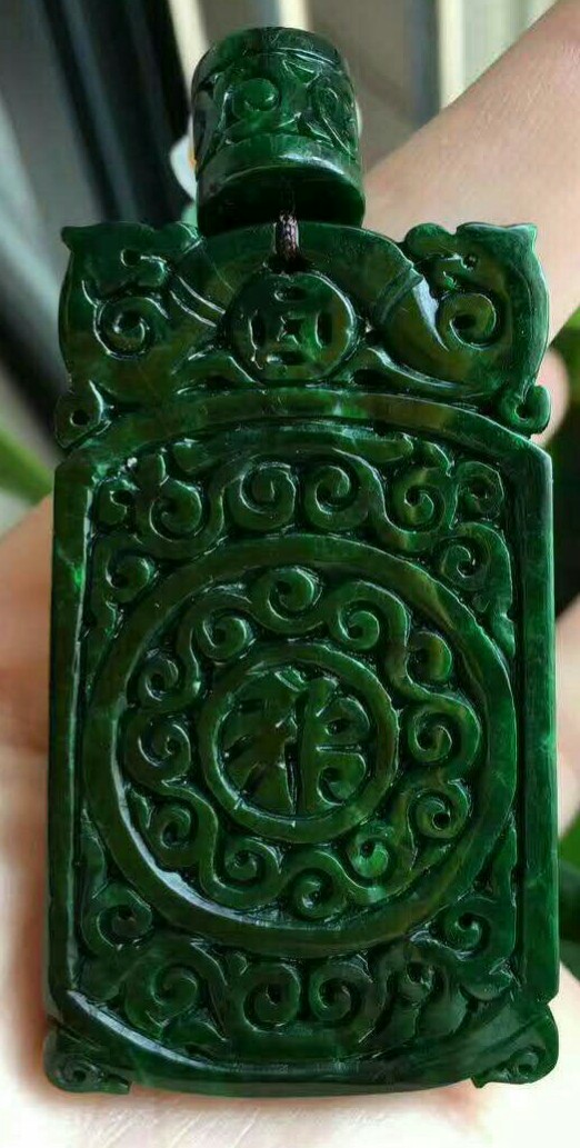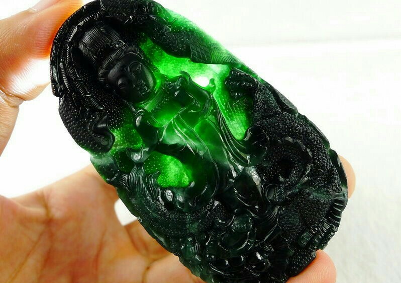 綠色較暗,偏灰色或藍色,表面呈油脂光澤,故稱油青。價格根據透明度分等級,但由於顏色不討好,一般不能躋身高價首飾的行列。
