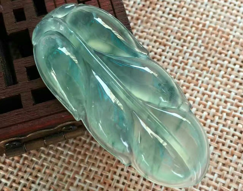 如帶絮花狀或脈帶狀的藍色,稱為冰種飄藍花,是近年深受歡迎的品種。