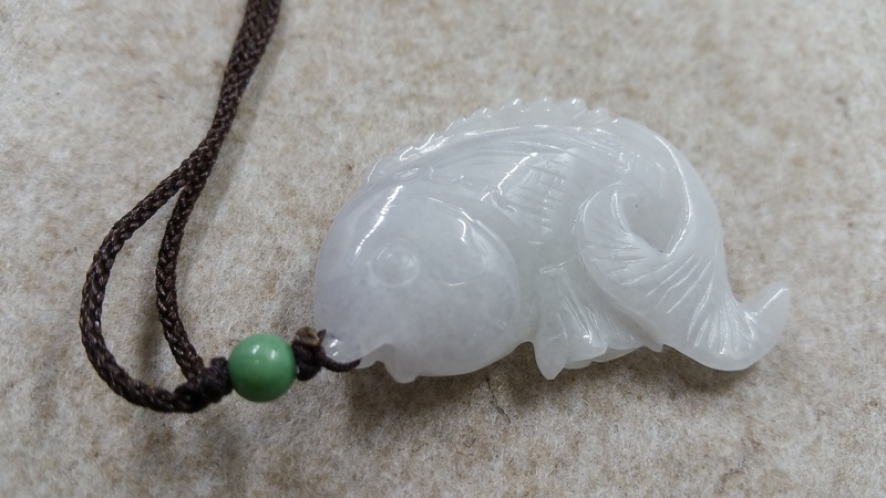 本店也一些魚兒吊飾,但跟上文那「枯魚」有所不同,翡翠魚外表光澤亮麗,玉質柔和,形態可愛,栩栩如生。在玻璃窗櫥展示著,每天在川流不息的人潮中,靜待著一個喜愛牠的顧客接回家。
