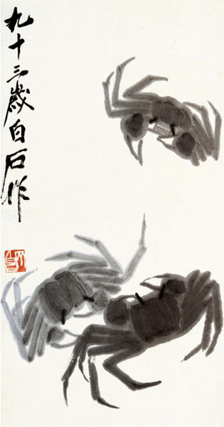 只見白石老人舉止淡定,沉思片刻就走到案前大筆一揮,雪白的宣紙上驀地出現了一隻栩栩如生,張牙舞爪的大螃蟹。眾人讚嘆之下,宣鐵吾裝作懂得欣賞地在沉吟之時,齊白石隨手又添了兩行題字「橫行到幾時」和「鐵吾將軍」。眾人至此面面相覷,大驚失色。宣鐵吾登時臉紅耳赤,而白石老人卻在輕輕一笑之後擲筆離去。
