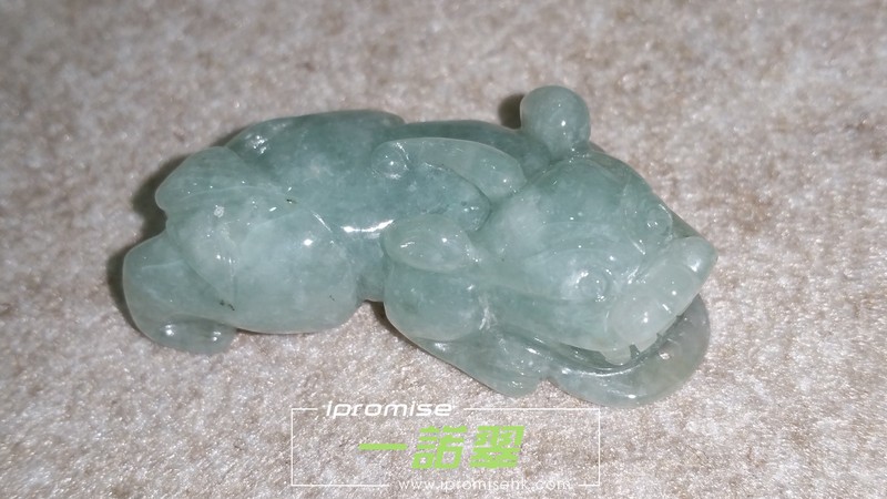 【天然翡翠 · 貔貅印章】已售 每當看到這類造型的貔貅,總會哼著《極速傳說》的幾句「頭搖又尾擺,飄移境界……」。本印章玉質優良,小貔貅造型跳脫,尾巴色辣,揹上如意一顆,頭搖又尾擺,像隨時極速為主人送福。
