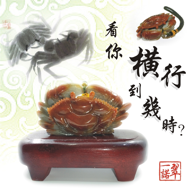 【八方來財 · 橫行天下】 本品只供展示 剛搜羅了這件以翡翠雕琢成的螃蟹,這擺件雕功精巧,神態栩栩如生,寓意「八方來財」和「橫行天下」,現已在店中陳列不作發售。