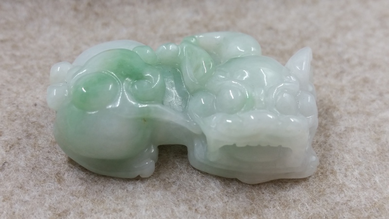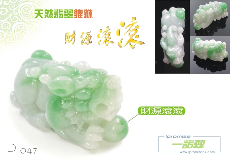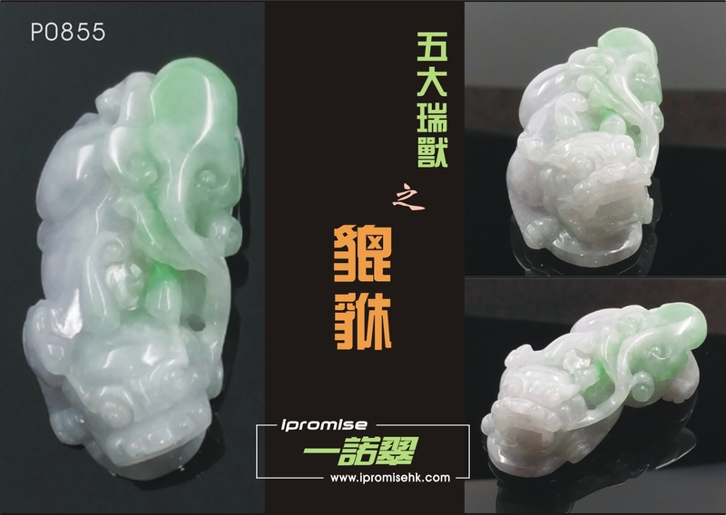 P0855 翡翠貔貅【已結緣】 中國傳統中五大瑞獸,分別是:龍,鳳,龜,貔貅,麒麟。本品雕功精緻,色彩鮮明,屬同類雕件中之上品。今天由貴客惠顧接走,謹祝她萬事勝意,大吉大利。