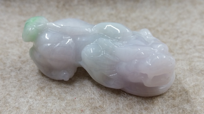 天然翡翠 · 紫羅蘭貔貅 本品雕功精緻,非常生動。市面罕見紫羅蘭貔貅,玉質細膩色澤鮮明,已獲貴客惠顧接走。