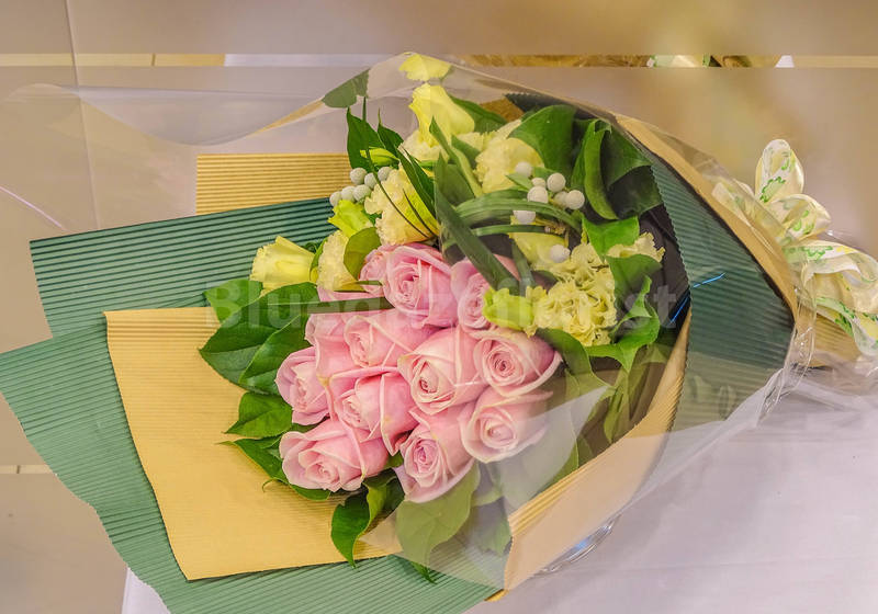 12支粉紅玫瑰,香檳桔梗,配搭合時襯花和葉