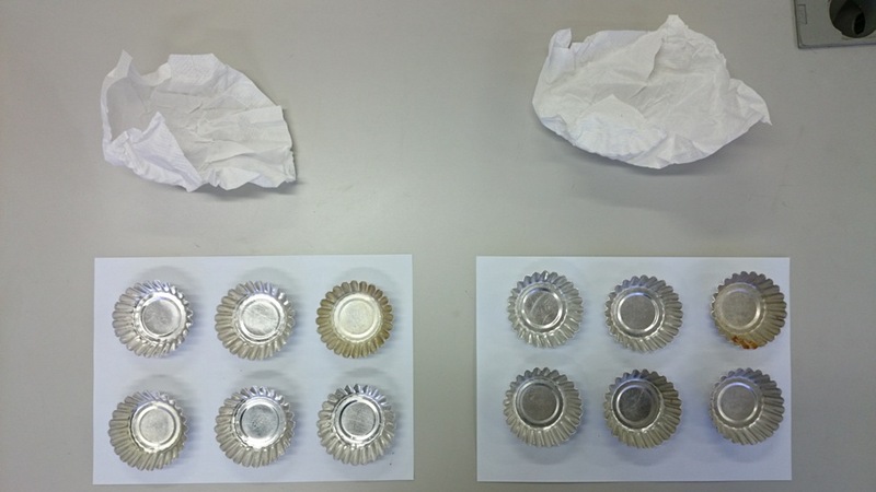 Tart molds before ultrasonic cleaning