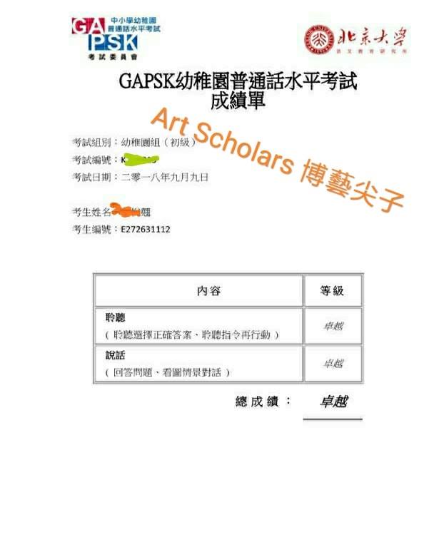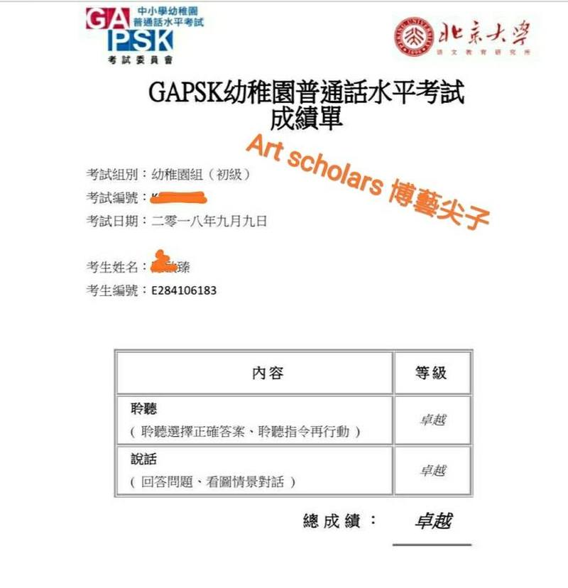 GAPSK考試由北京大學語文教育研究所研發,為幼稚園K1、K2或K3學童普通話水平測試的新指標✨。內容分聆聽及說話兩部份,以遊戲形式重點評估學生聽、說普通話的能力。希望通過愉快形式,消除幼小學童對語言考試的懼怕。學生的成績更可作為升學時的普通話語言能力有力的認證👍。