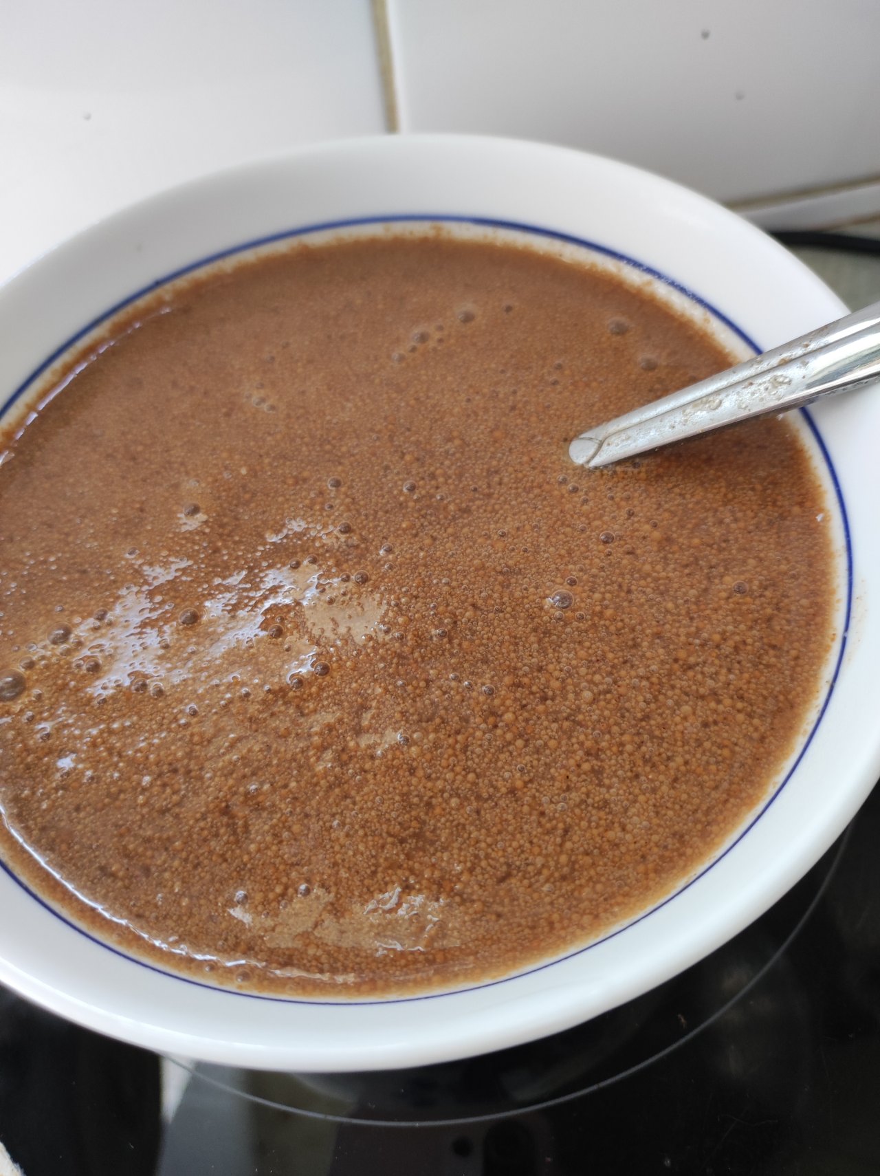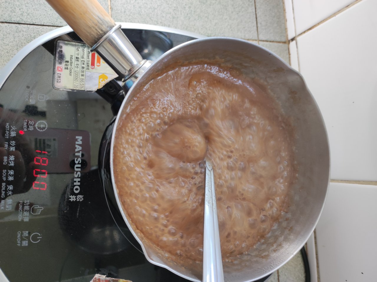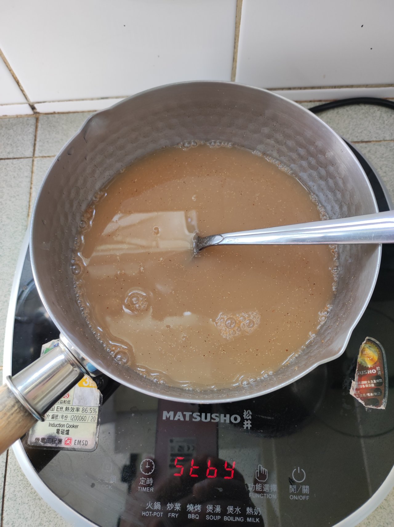 1小包食材幼粉倒入鍋中加400毫升食水攪拌溶化,然後開火攪拌煮滾放涼16分鐘之後飲服