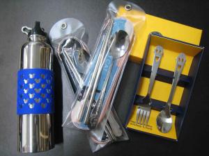 不綉鋼匙, 叉, 筷子和水壺等.