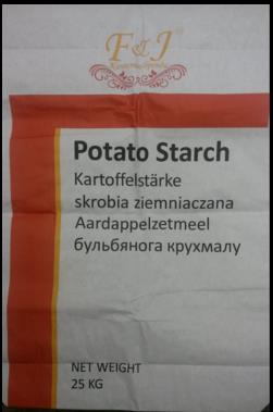 Brand: F&J Potato StarchOrigin: EuropeWeight: 25 KGViscosity: 1325Bu-1500BuExpiry Dates: 5 years the production dateStorage: relative humidity 60-75% , temperature to 20°c